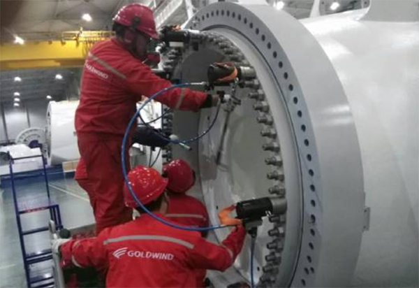 這也就是為什么在實際的風(fēng)力發(fā)電機安裝過程中為什么要使用高精度的液壓扳手和風(fēng)電專用螺栓拉伸器來嚴(yán)格按照要求施加預(yù)緊力預(yù)緊風(fēng)機螺栓,避免因精度不足造成實際作用在螺栓上的預(yù)緊力過小導(dǎo)致螺栓實際壽命低于設(shè)計壽命。