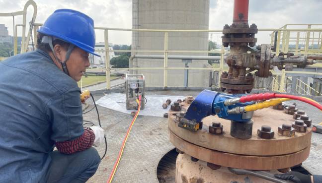 內(nèi)六角高強(qiáng)螺栓的預(yù)緊與普通六角螺栓的預(yù)緊原理是一樣的,只是設(shè)計(jì)有些微不同。內(nèi)六角高強(qiáng)螺栓有相應(yīng)的內(nèi)六角液壓扳手工具來進(jìn)行拆卸和預(yù)緊。其和普通液壓扳手的區(qū)別并不大,只是驅(qū)動(dòng)軸不同。普通的液壓扳手驅(qū)動(dòng)軸設(shè)計(jì)為四方軸,適配不同規(guī)格的高強(qiáng)套筒套在螺母上進(jìn)行作業(yè)。內(nèi)六角液壓扳手的驅(qū)動(dòng)軸外端直接為六方軸,直接將驅(qū)動(dòng)軸插入內(nèi)六方螺母進(jìn)行作業(yè),不需要再加套筒,不同規(guī)格需要配置多個(gè)規(guī)格內(nèi)六方驅(qū)動(dòng)軸。