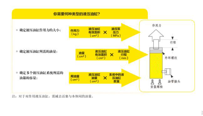 在選擇液壓油缸時首先得確定油缸的噸位。一般來說,我們所選的液壓油缸噸位必須要比負(fù)載高20%噸位。無論是在哪種工況應(yīng)用,液壓油缸的本體高度加上行程是否有足夠的使用空間決定了這一型號能否用。因此,油缸的本體高度及行程是必須要考慮的,且所選油缸行程必須要選擇有足夠余量的。