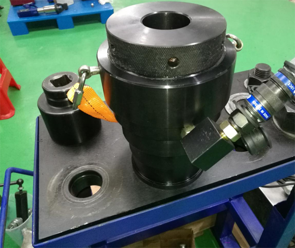 機(jī)車缸頭拉伸器可在機(jī)車在不落修柴油機(jī)的情況下,快速對(duì)缸頭螺母進(jìn)行拆裝,從而吊出動(dòng)力組件檢修,由以下部分構(gòu)成:液壓拉伸泵、四同部液壓拉伸器及高壓油管、動(dòng)力組吊具組成。