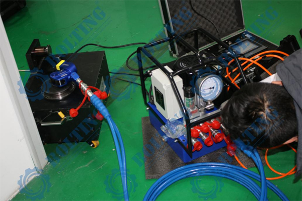 液壓扭力扳手第三方扭矩校驗(yàn)檢測,理論上液壓扭力扳手檢測標(biāo)定與液壓泵的型號和流量無關(guān),液壓扭力扳手泵經(jīng)過校正壓力表,均可對液壓扭力扳手進(jìn)行檢測,經(jīng)過長期及大量的實(shí)踐證明,液壓泵的流量與扭矩大小息息相關(guān),舉例說明,BOLTING博霆PE55液壓扭力扳手泵和BOLTING博霆PE110液壓扭力扳手泵,采用同一塊經(jīng)過校驗(yàn)壓力表,分先后順序緊固一顆螺栓,由PE55液壓扭力扳手泵配套液壓扭力扳手先進(jìn)行緊固,達(dá)到設(shè)定壓力后(300bar),擰不動(dòng)了,換PE110液壓扭力扳手泵,壓力同樣設(shè)定300bar,壓力相同,螺栓同樣可以轉(zhuǎn)動(dòng),反之,采用PE55液壓扭力扳手泵,配合此扳手,壓力設(shè)定到300bar,確無法松動(dòng)螺栓,配PE110液壓扭力扳手泵可輕松拆卸此螺栓,得出結(jié)論,液壓扭力扳手在工作過程中,需克服摩擦力,雖然液壓扭力扳手無沖擊性,但流量決定可以克服多少摩擦力,液壓扭力扳手怎樣檢測更精準(zhǔn)?市場上部分廠家流量與扭矩存在虛標(biāo)成分(電動(dòng)液壓泵流量檢測最簡單方式,可采用單向閥裝置連接液壓油管,將液壓泵調(diào)整至所需檢測的壓力流量,每分鐘溢出的油量則是液壓泵流量,測流量裝置BOLTING博霆有售),計(jì)量院或第三方檢測機(jī)構(gòu)所采用的液壓泵型號不盡相同,采用購買液壓扭力扳手配套的電動(dòng)液壓扭力扳手泵,配套進(jìn)行檢測更為精確。